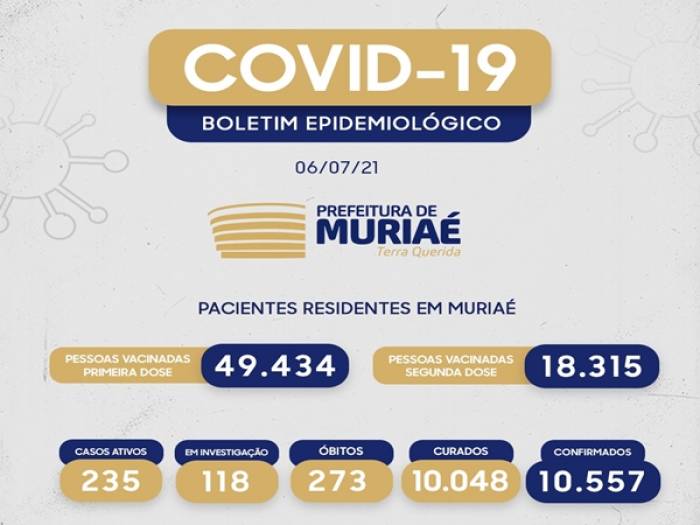 O boletim desta terça-feira (06) registrou mais uma morte provocada pela covid-19 em Muriaé. O óbito foi de um homem de 59 anos, que faleceu no último dia 3. Ele também sofria de doença renal e diabetes.